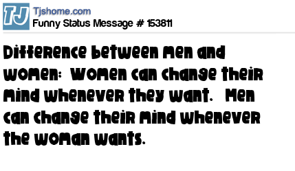 X says Difference between men and women: Women can change their mind whenever they want. Men can change their mind whenever the woman wants.