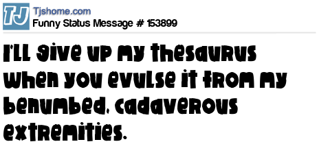 - # 153888 I’ll give up my thesaurus when you pry it from my frigid, frosty, frozen, cadaverous, lifeless, stiff, defunct extremities.