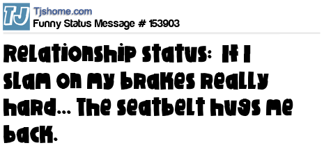 X says Relationship status: If I slam on my brakes really hard... The seatbelt hugs me back.