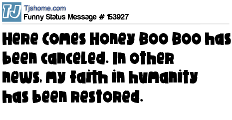 X says Here Comes Honey Boo Boo has been canceled. In other news, my faith in humanity has been restored.