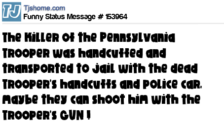 X says The killer of the Pennsylvania Trooper was handcuffed and transported to jail with the dead Trooper's handcuffs and police car, maybe they can shoot him with the Trooper's GUN !