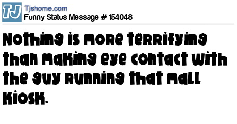 - # 193678 othing is more frightening than accidentally making eye contact with a guy who runs a mall kiosk.
