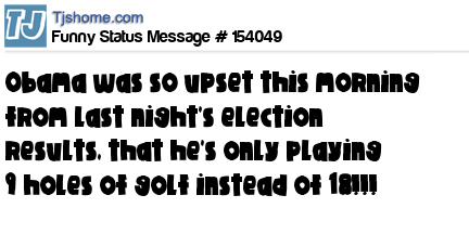 X Obama was so upset this morning from last night's election results, that he's only playing 9 holes of golf instead of 18!!!