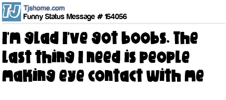 - # 120987 I'm glad I've got boobs. The last thing I want is people making eye contact with me.