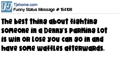 X says The best thing about fighting someone in a Denny's parking lot is win or lose you can go in and have some waffles afterwards.