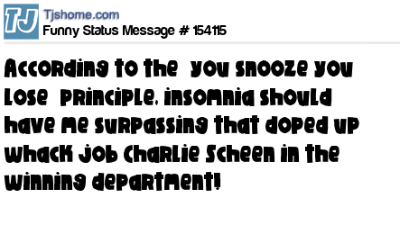 X According to the “you snooze you lose” principle, insomnia should have me surpassing that doped up whack job Charlie Scheen in the winning department!