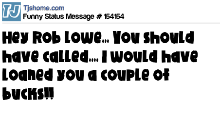 X says Hey Rob Lowe,,, You should have called,,,, I would have loaned you a couple of bucks!!