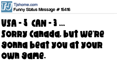 - # 15885 if it wasn't for the USA all you hosers up there in Canada would be speaking Russian right now...But it was a hell of a game!