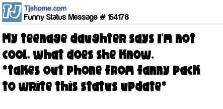 X says My teenage daughter says I'm not cool, what does she know. *takes out phone from fanny pack to write this status update*