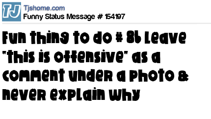 X says Fun thing to do # 86 Leave "this is offensive" as a comment under a photo & never explain why