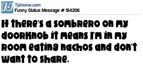 X If there's a sombrero on my doorknob it means I'm in my room eating nachos and don't want to share.