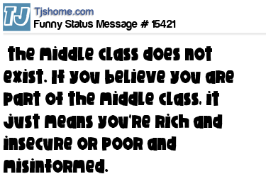 - # 100683 The middle class does not exist. If you believe you are part of the middle class, it just means you're rich and insecure or poor and misinformed.