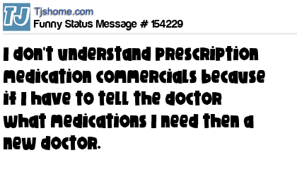 X says I don't understand prescription medication commercials because if I have to tell the doctor what medications I need then a new doctor.