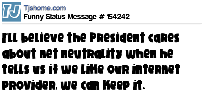 X says I'll believe the President cares about net neutrality when he tells us if we like our internet provider, we can keep it.