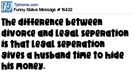 X The difference between divorce and legal seperation is that legal seperation gives a husband time to hide his money.