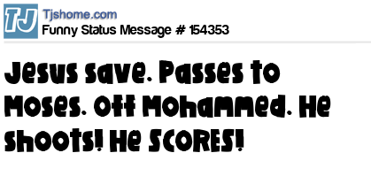X says Jesus save. Passes to Moses. Off Mohammed. He shoots! He SCORES!