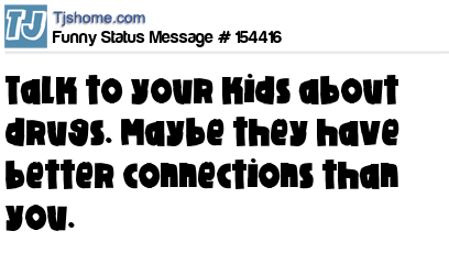 - # 161098 Talk to your kids about drugs. No, seriously. They have better connections.