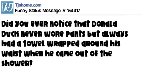 X says Did you ever notice that Donald Duck never wore pants but always had a towel wrapped around his waist when he came out of the shower?