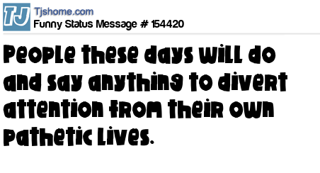 X says People these days will do and say anything to divert attention from their own pathetic lives.