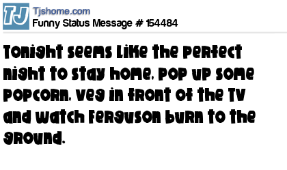 X says Tonight seems like the perfect night to stay home, pop up some popcorn, veg in front of the TV and watch Ferguson burn to the ground.