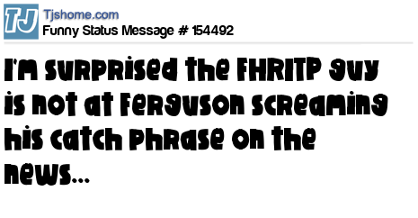 X says I'm surprised the FHRITP guy is not at Ferguson screaming his catch phrase on the news...