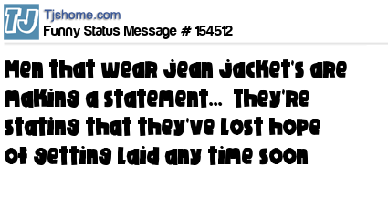 X says Men that wear jean jacket's are making a statement...  They're stating that they've lost hope of getting laid any time soon