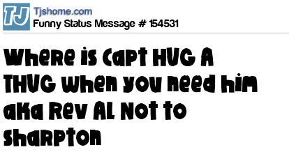 X says Where is Capt HUG A THUG when you need him aka Rev Al Not to sharpton