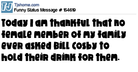 X says today I am thankful that no female member of my family ever asked Bill Cosby to hold their drink for them.