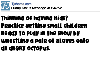 X says Thinking of having kids? Practice getting small children ready to play in the snow by wrestling a pair of gloves onto an angry octopus.