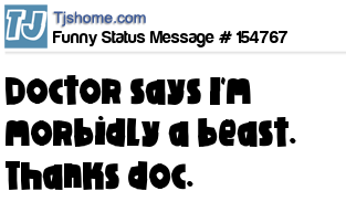 X says Doctor says I'm morbidly a beast. Thanks doc.