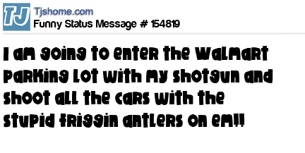 X says I am going to enter the Walmart parking lot with my shotgun and shoot all the cars with the stupid friggin antlers on em!!