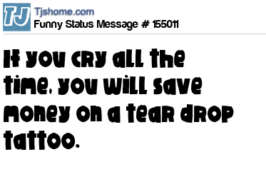 X says If you cry all the time, you will save money on a tear drop tattoo.