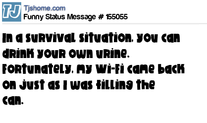 X says In a survival situation, you can drink your own urine. Fortunately, my Wi-Fi came back on just as I was filling the can.