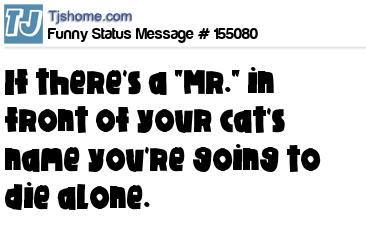 X says If there's a "Mr." in front of your cat's name you're going to die alone.