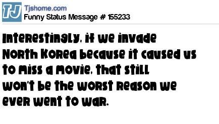 X says Interestingly, if we invade North Korea because it caused us to miss a movie, that still won't be the worst reason we ever went to war.