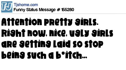 X Attention pretty girls. Right now, nice, ugly girls are getting laid so stop being such a b*itch…