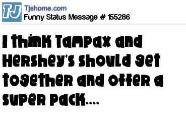 X says I think Tampax and Hershey's should get together and offer a super pack....