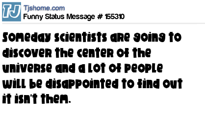 - # 208756 Someday when scientists discover the center of the universe, a lot of people are going to be disappointed to find out it isn't them.