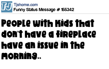 - # 157656 I slept like a log last night. Woke up this morning in the fireplace.