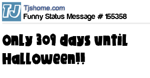 - # 188679 "54 days till Halloween Halloween Halloween, 54 days till Halloween Sliver Shamrock." Ba ha ha boo.