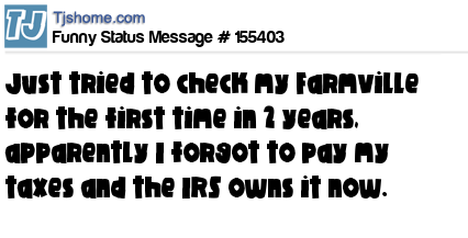 X says Just tried to check my Farmville for the first time in 2 years, apparently I forgot to pay my taxes and the IRS owns it now.