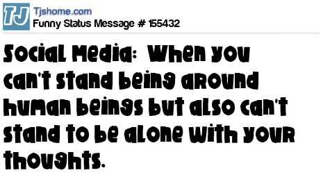X says Social Media: When you can't stand being around human beings but also can't stand to be alone with your thoughts.
