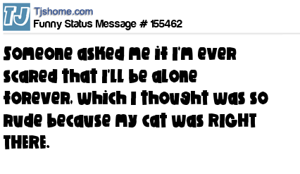 X says Someone asked me if I'm ever scared that I'll be alone forever, which I thought was so rude because my cat was RIGHT THERE.