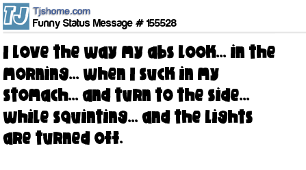 X says I love the way my abs look... in the morning... when I suck in my stomach... and turn to the side... while squinting... and the lights are turned off.