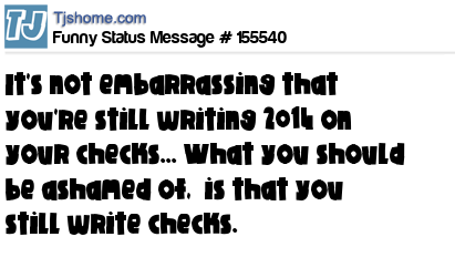 X It's not embarrassing that you're still writing 2014 on your checks... What you should be ashamed of, is that you still write checks.