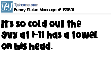 - # 42333 says it is so cold outside, that even the guy at the gas station had a towel on his head!