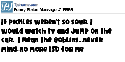 X is if pickles weren't so sour, I would watch tv and jump on the car. I mean the goblins...never mind..no more LSD for me