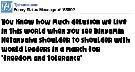 X says You know how much delusion we live in this world when you see Binyamin Netanyahu shoulder to shoulder with world leaders in a march for "freedom and tolerance"