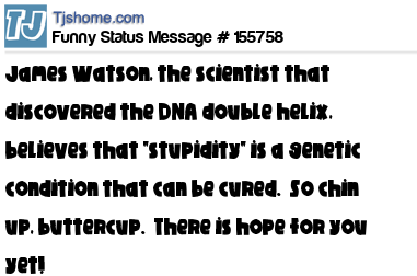 X says James Watson, the scientist that discovered the DNA double helix, believes that "stupidity" is a genetic condition that can be cured. So chin up, buttercup. There is hope for you yet!