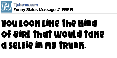 X says You look like the kind of girl that would take a selfie in my trunk.